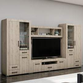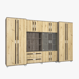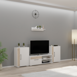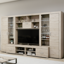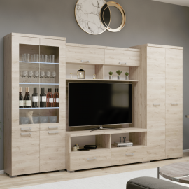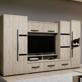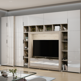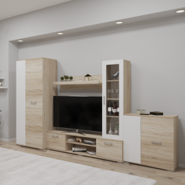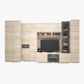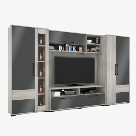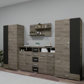 Adél szekrénysor látványos LED világítással, valamint magasfényű betéttel. Rendelkezik polcos, fiókos és akasztós részekkel. A termék 18 mm-es laminált forgácslapból készül, a lapok ABS élzárással vannak ellátva. A termék elemenként készre szerelve kerül kiszállításra.