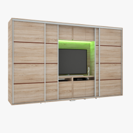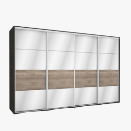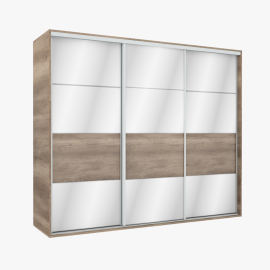 Bangkok tolóajtós gardróbszekrény - Különlegességét adja a gardróbajtón található üvegbetét. Mindezt fokozza az üvegen az egyszerű, de nagyon elegáns dekorációs elem. Opcionálisan választható termékek: – fózolt tükör – tükör – fiókos alsó magasító – tolóajtós felső magasító, valamint tolóajtós sarokelem alsó, illetve felső magasítókkal. A termékhez alapvetően tartozik 2 db mándlirúd, 3 db polc, valamint egy fiókkonténer.