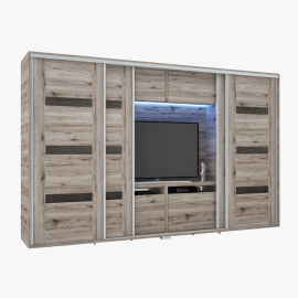 A Capri tolóajtós Tv-s gardrób 239 cm és 318 cm-es méretekben. A san remo korpuszhoz canterbury dekorsávval díszített, san remo színű ajtó társul valamint justus és sötét justus tölgy kombnációban érhető el. Egyediségét az adja, hogy zárt állapotban egy elegáns tolóajtós gardróbnak tűnik,viszont a középső részen a televízió szá..