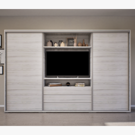Bangkok tolóajtós Tv-s gardrób 318 cm-es méretben. Egyediségét az adja, hogy zárt állapotban egy elegáns tolóajtós gardróbnak tűnik,viszont a középső részén a televízió számára kialakított hely található. Kiegészíthető még RGB LED világítással. Opcionálisan választható termékek: -sarokpolc - tolóajtós sarokelem (alsó, illetve felső magasítóval is) - fózolt tükör - fiókos alsó magasító - tolóajtós magasító.